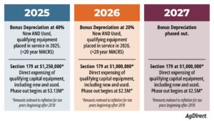 Stacking with Bonus Depreciation: After applying Section 179 (up to $2,500,000 in 2025), any remaining eligible asset cost can be deducted using 100% bonus depreciation for assets placed in service after Jan 19, 2025.